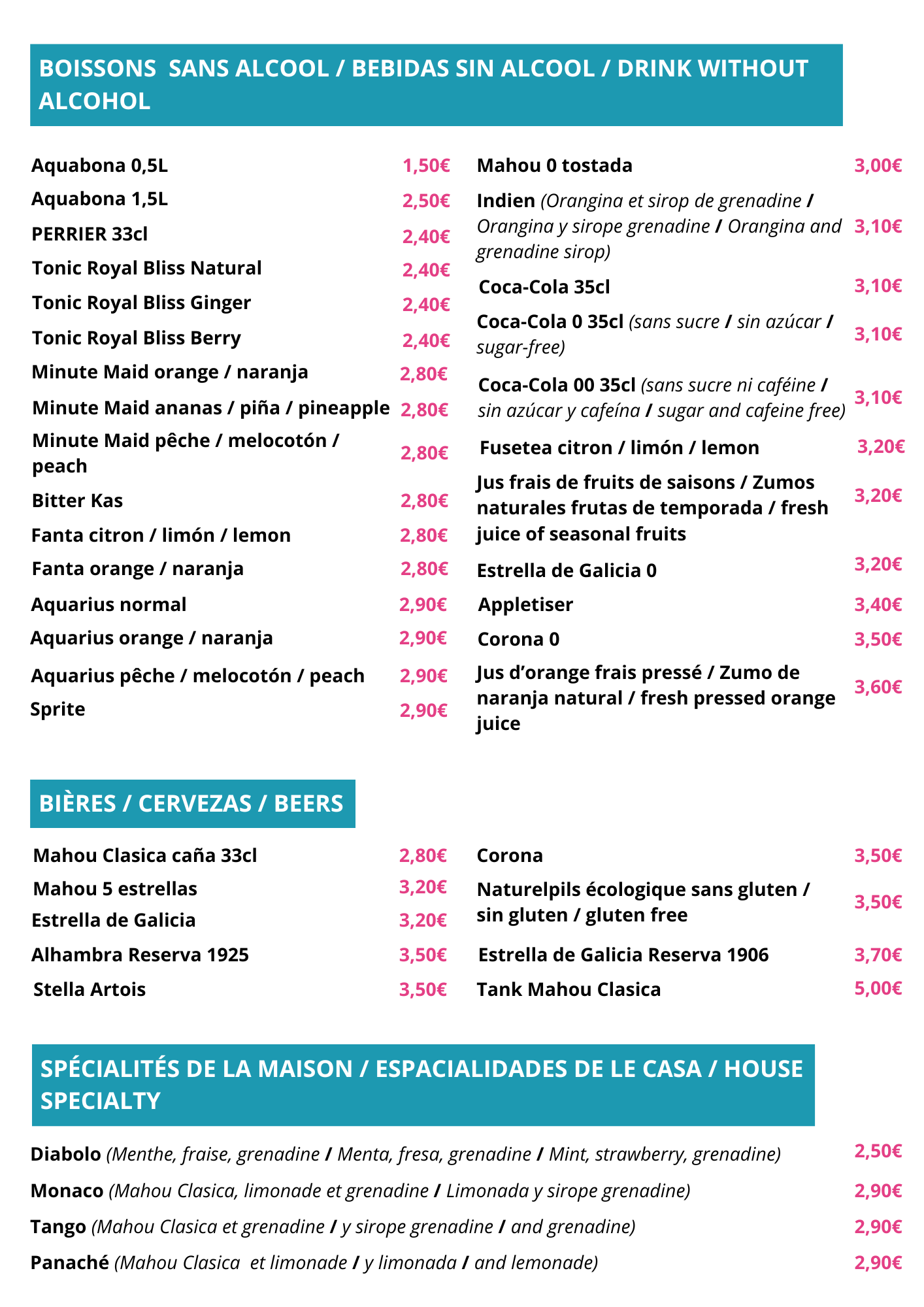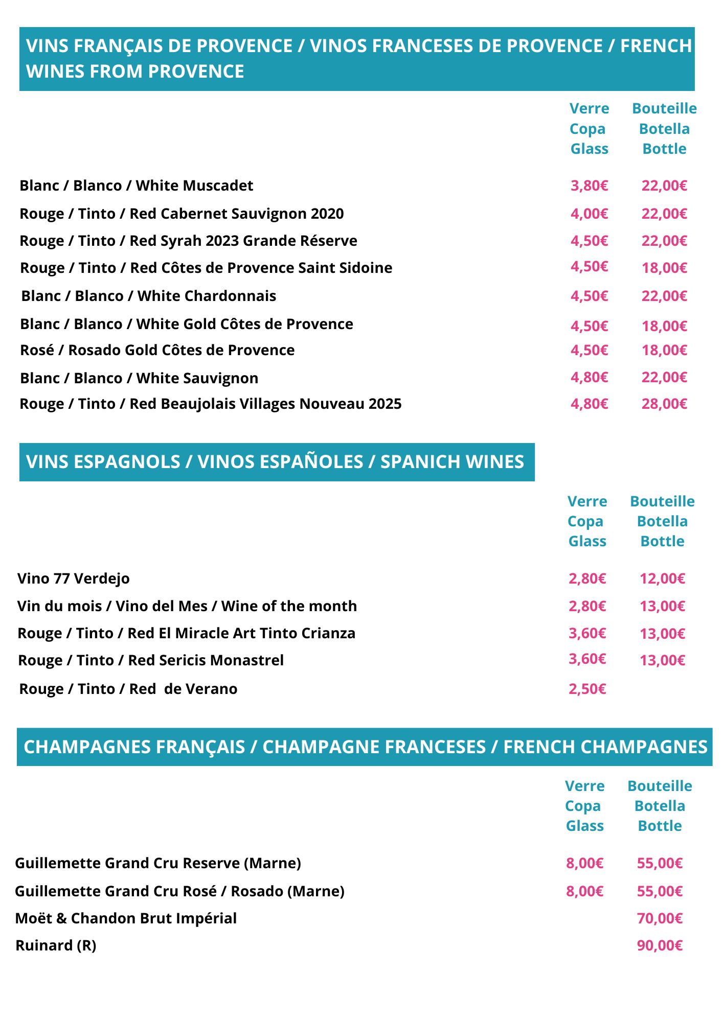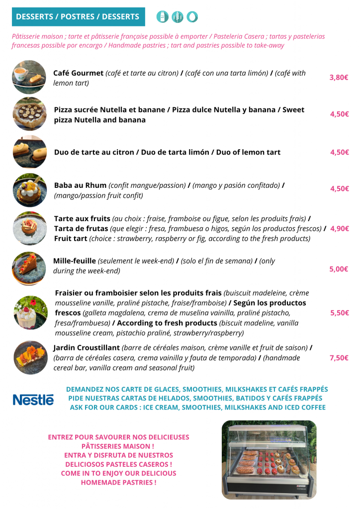 Viennoiserie & Pâtisseries Françaises – Tapas – Plats & Salades – Cocktails