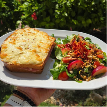 Croque-Monsieur, ensalada y patatas