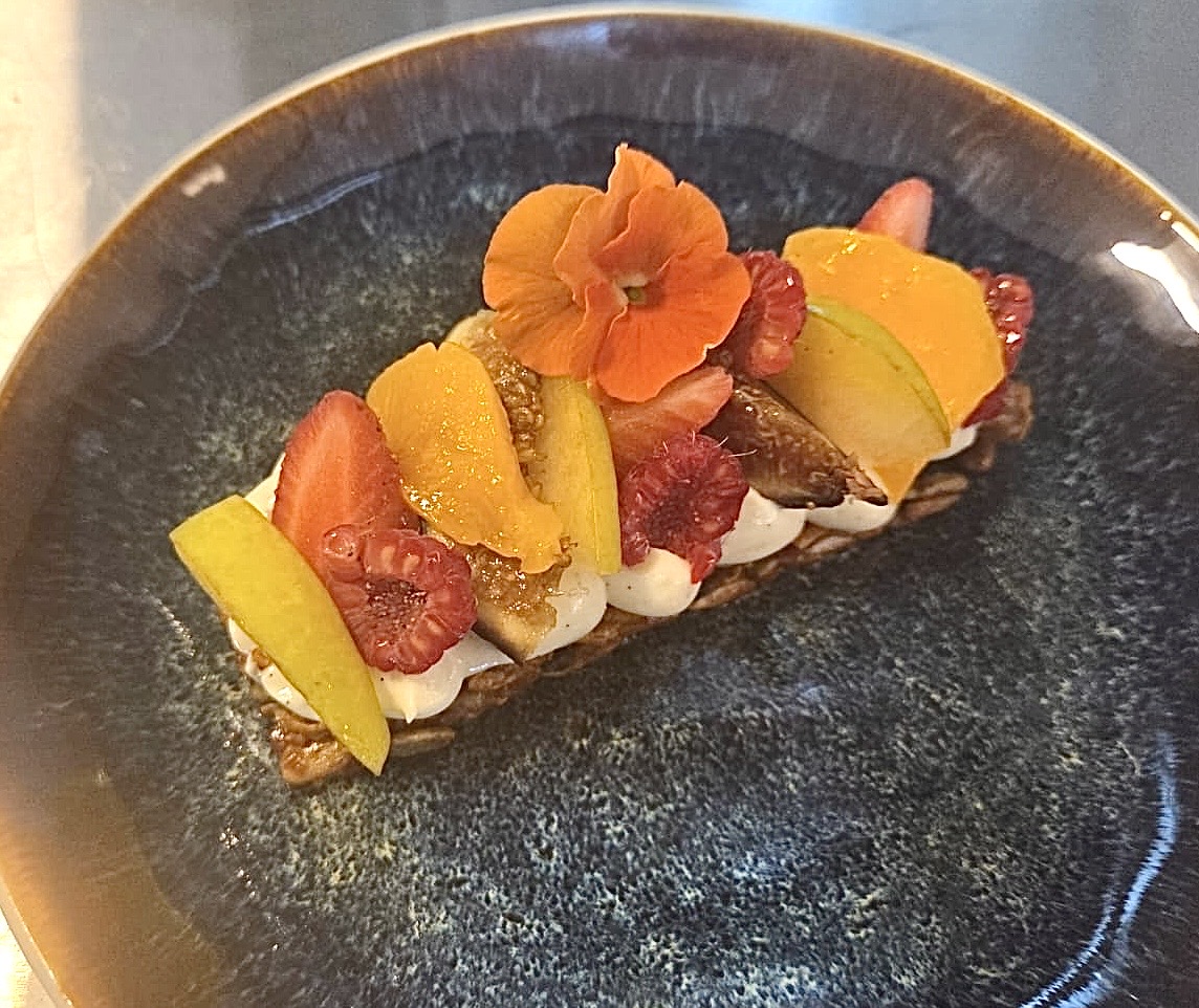 Tarta de frutas (a elegir fresas, frambuesas o higos, según la llegada de los productos frescos)