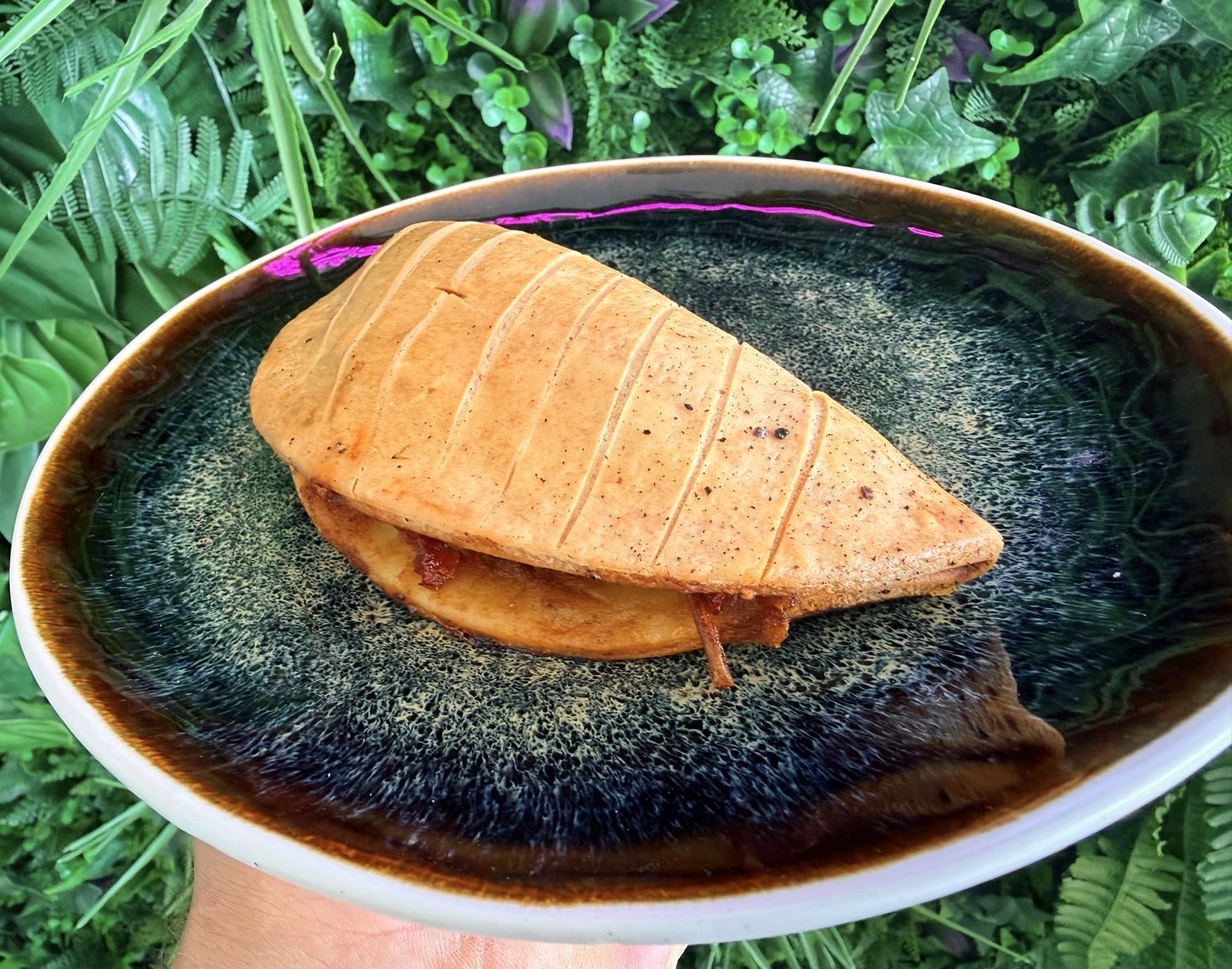Empanada de tomate, cebolla y pimientos confitados caseros