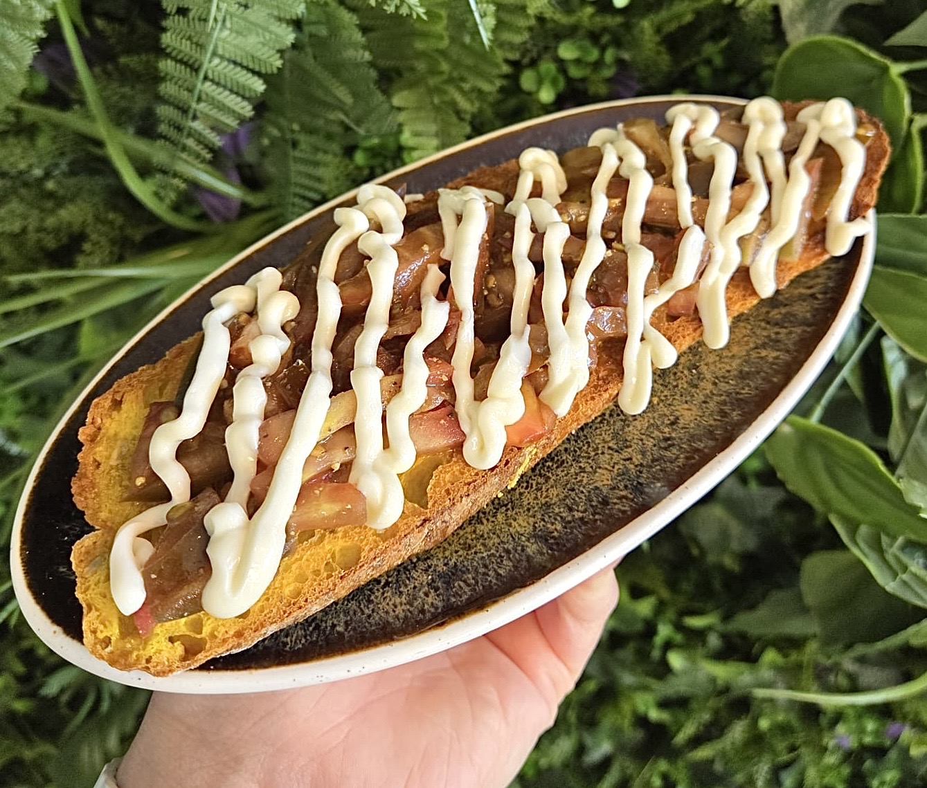 Focaccia de tomate, ensalada y balsámico